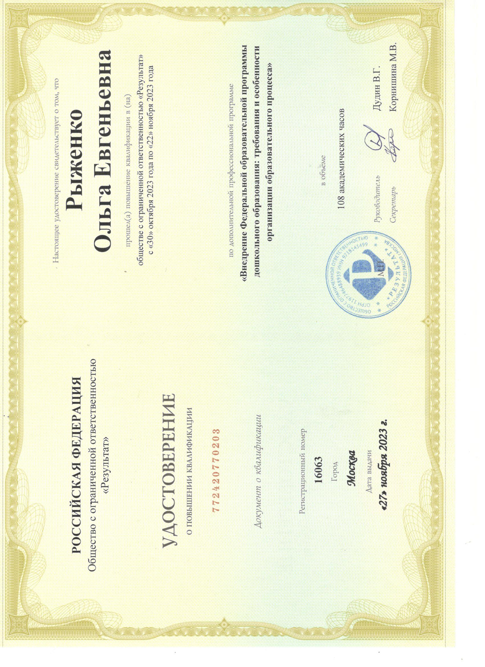 2023 год: ООО "Результат" - "Внедрение Федеральной образовательной программы дошкольного образования: требования и особенности организации образовательного процесса"